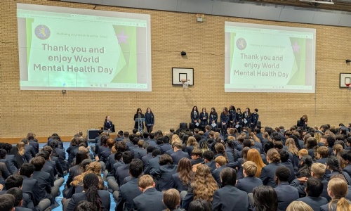 Our fantastic team of student Mental Health ambassadors, supported by our Wellbeing Coordinator Dr Zebedee and Assistant Head Mrs Rogers were today proud to promote World Mental Health Day at UGS.