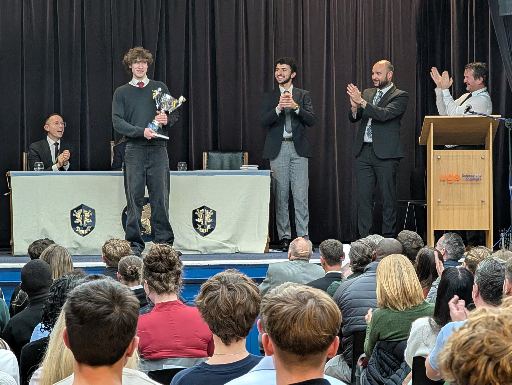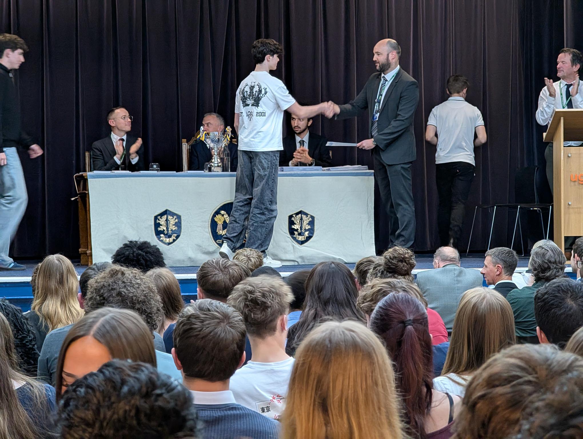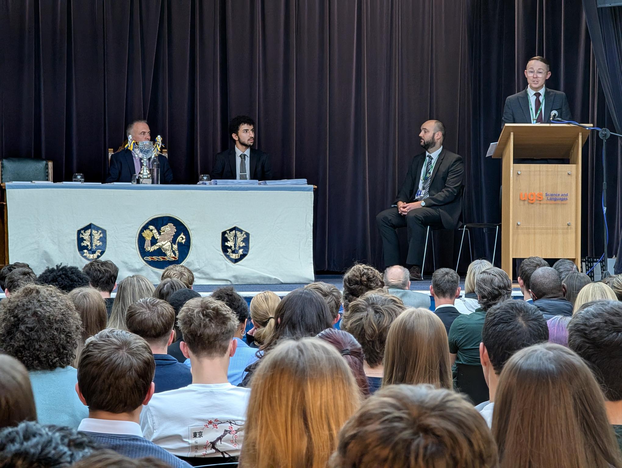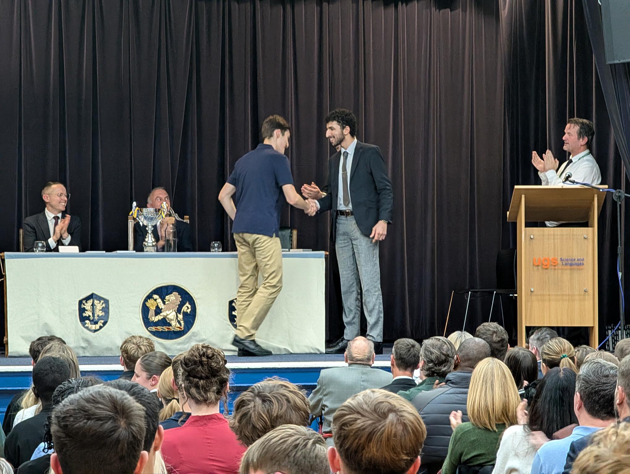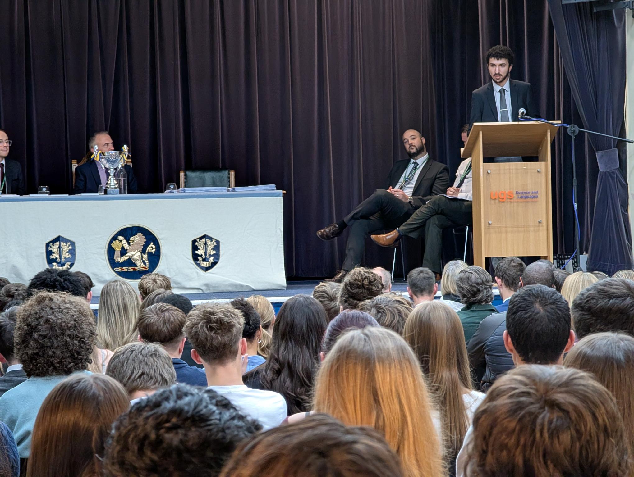 Proceedings began with a fantastic musical performance of Shiro Sagisu's `Going Home` from Year 10 student Garcia and we were also delighted to welcome back former student Yaseen (pictured below), who is now reading Law at Manchester University, to deliver an inspirational speech to our students and guests and to help present certificates.
