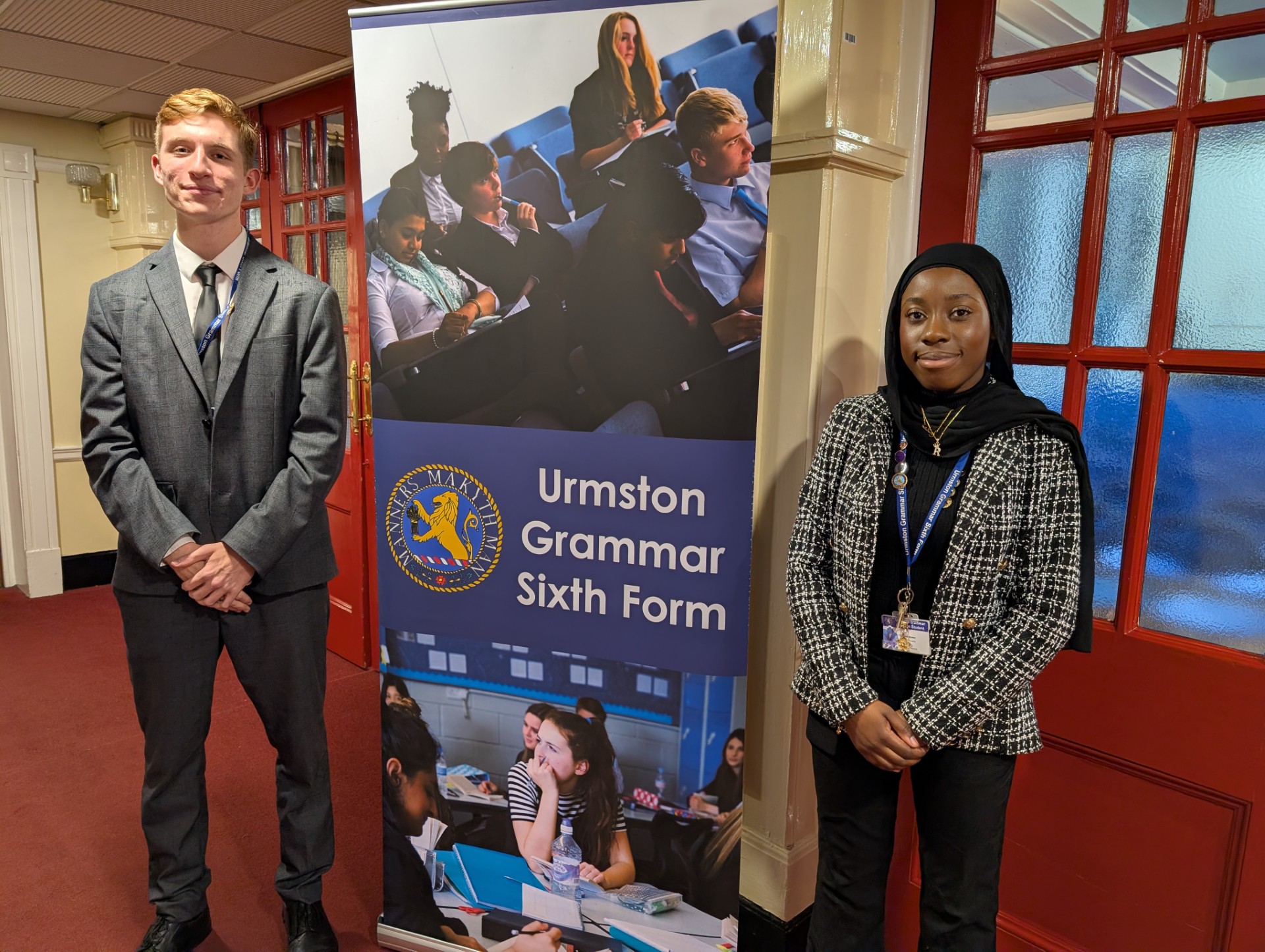The evening opened with presentations from Mr Kennedy-Fowler and Head of Sixth Form Mrs Mangham-Dewhurst, and from Head Boy Zane and Head Girl Rahmat, pictured below, who both transferred to our Sixth Form from other schools following their GCSEs, and gave inspirational talks about the defining moments of their UGS 6th form experience.