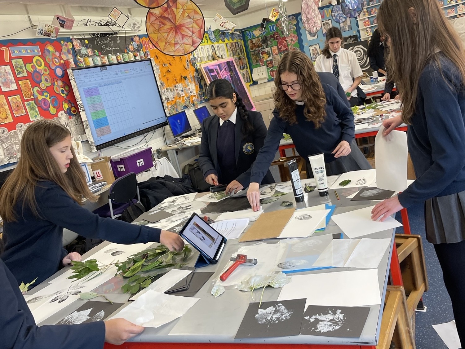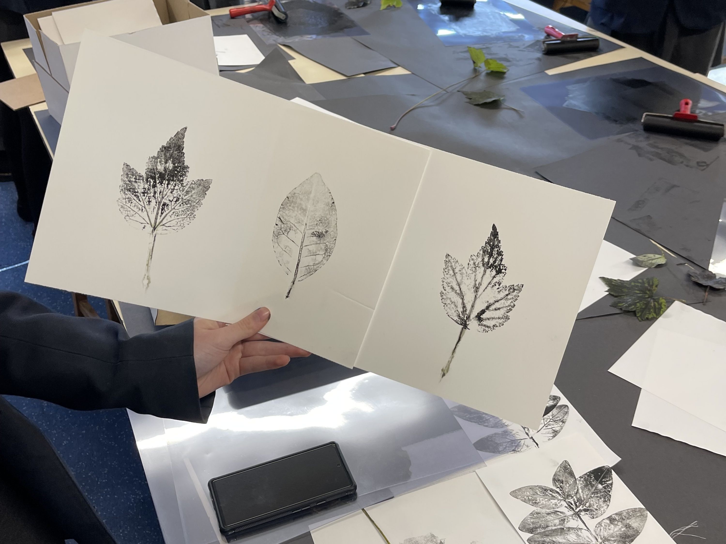 Also today, our Year 10 Art and Textiles students took part in a print-making workshop, making great use of foliage collected from our grounds, with some impressive results, as you can see!