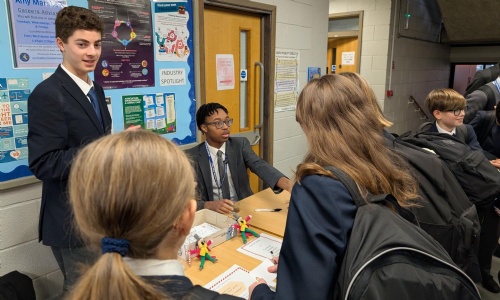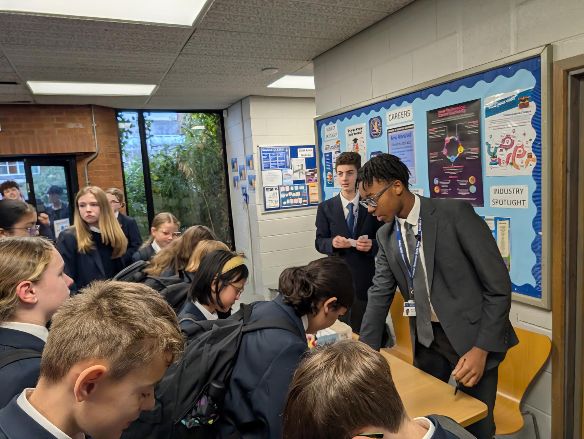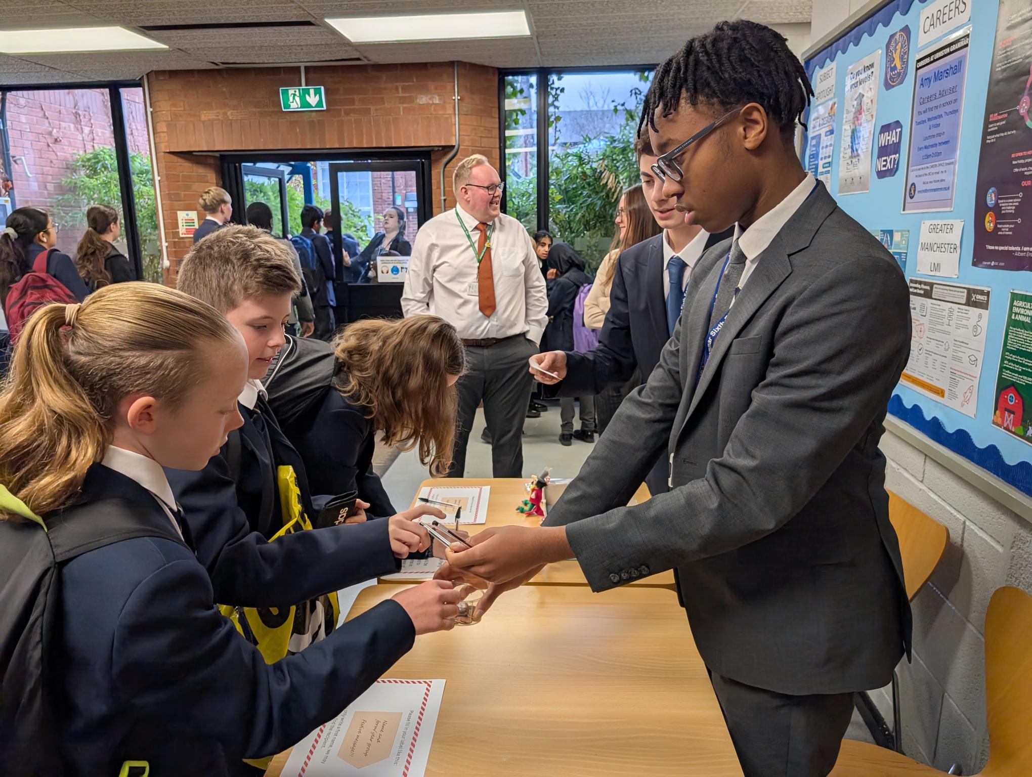 And today they did us particularly proud. Firstly, our House Prefects (just 2 of whom, Adam and Chiedozie, are pictured in our lead picture and below with house leader Mrs Chadwick) have organised a fund-raising drive, that launched today and will continue to take place throughout this week, to raise money for our annual Christmas party for the children of Delamere School, a lovely occasion that also sees us welcome a very special gift-bearing guest!