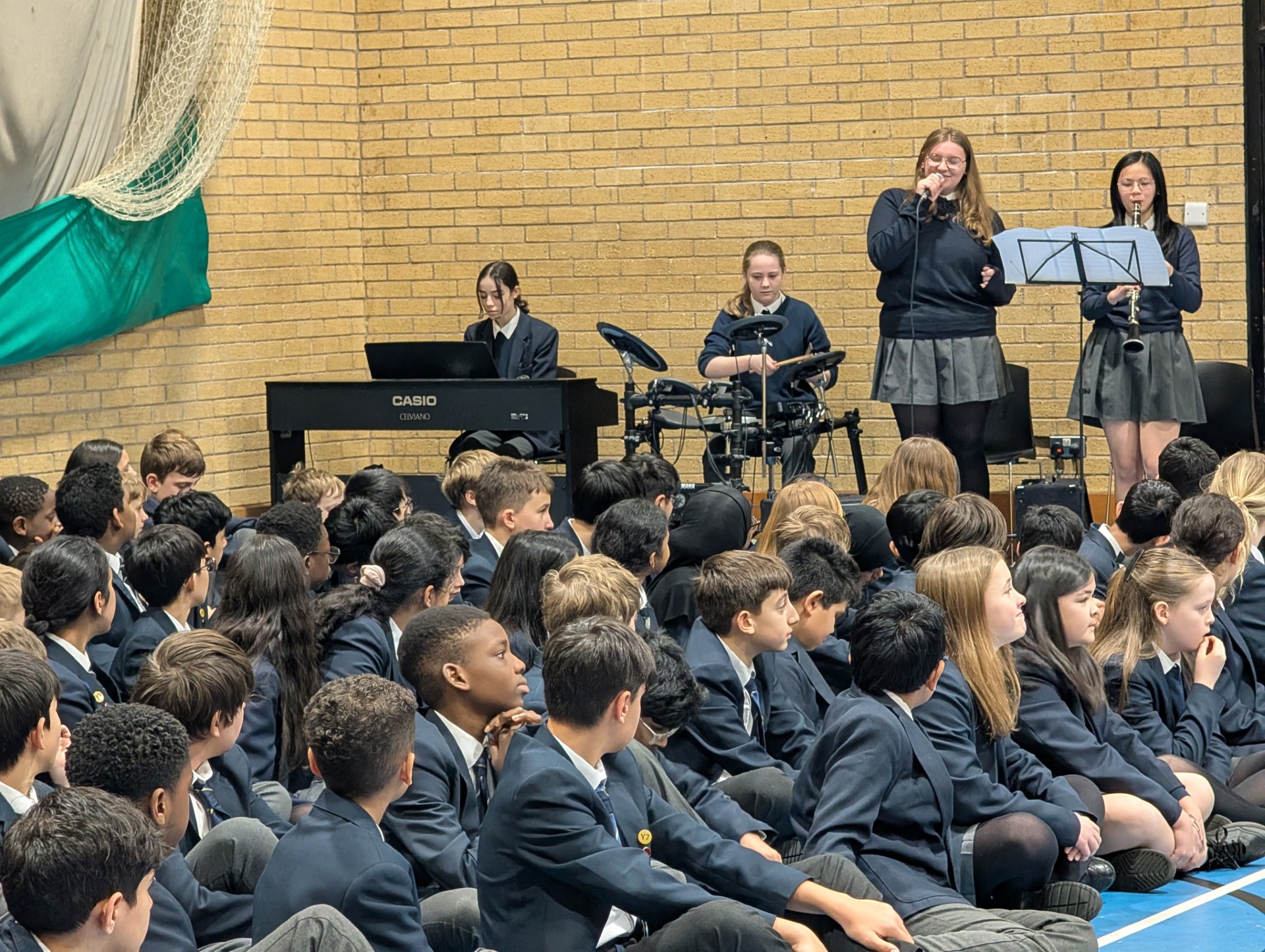 We were also treated to a pitch-perfect performance of Chappell Roan's Pink Pony Club from talented Year 11 musicians Marianne, Lara, Maddy and Shanese (pictured below).