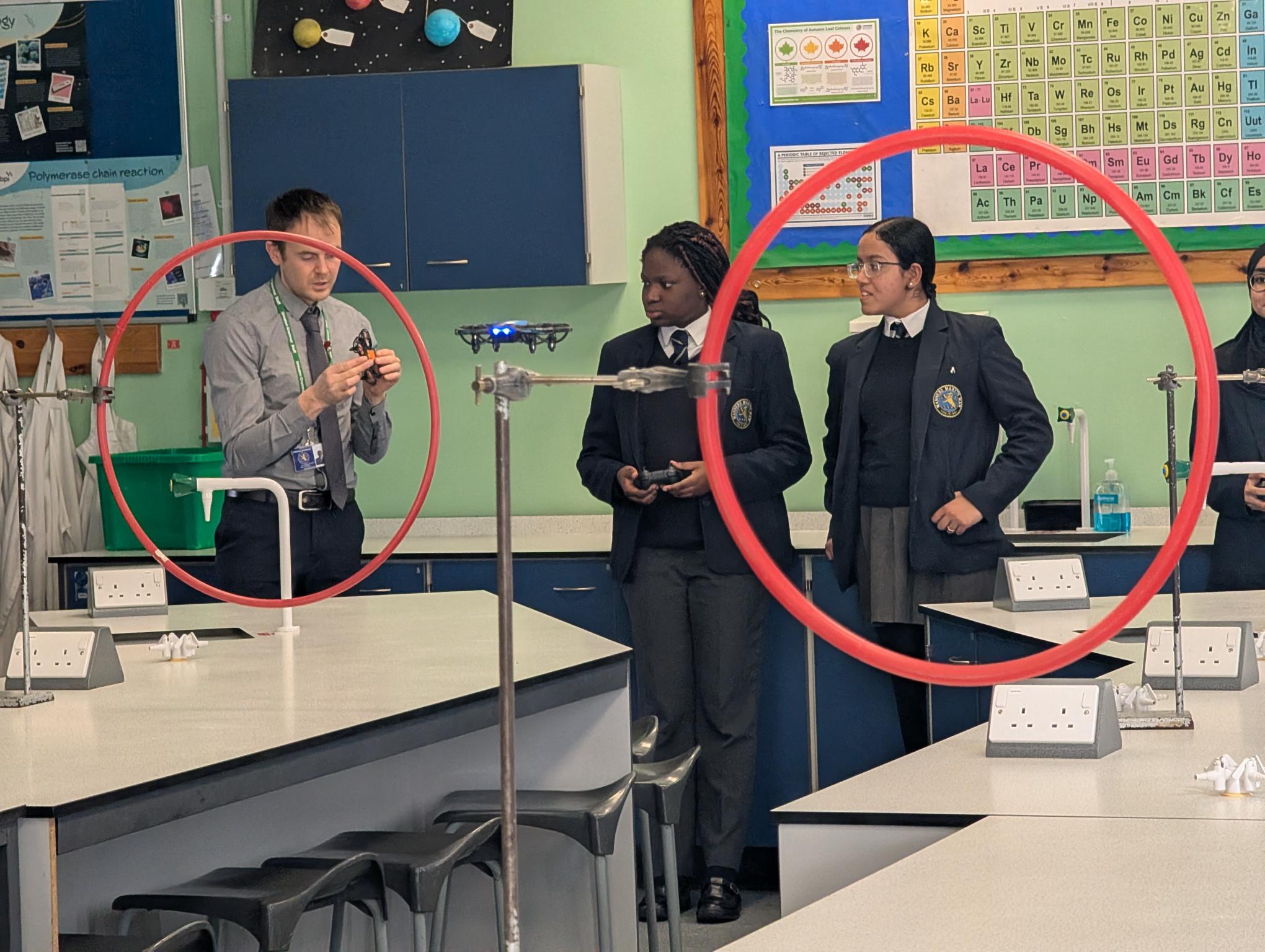 After an epic launch with our Year 7 Science Fair on Monday, Science Week continues apace. In our Physics department, Year 11 got the opportunity to take part in a drone obstacle course.