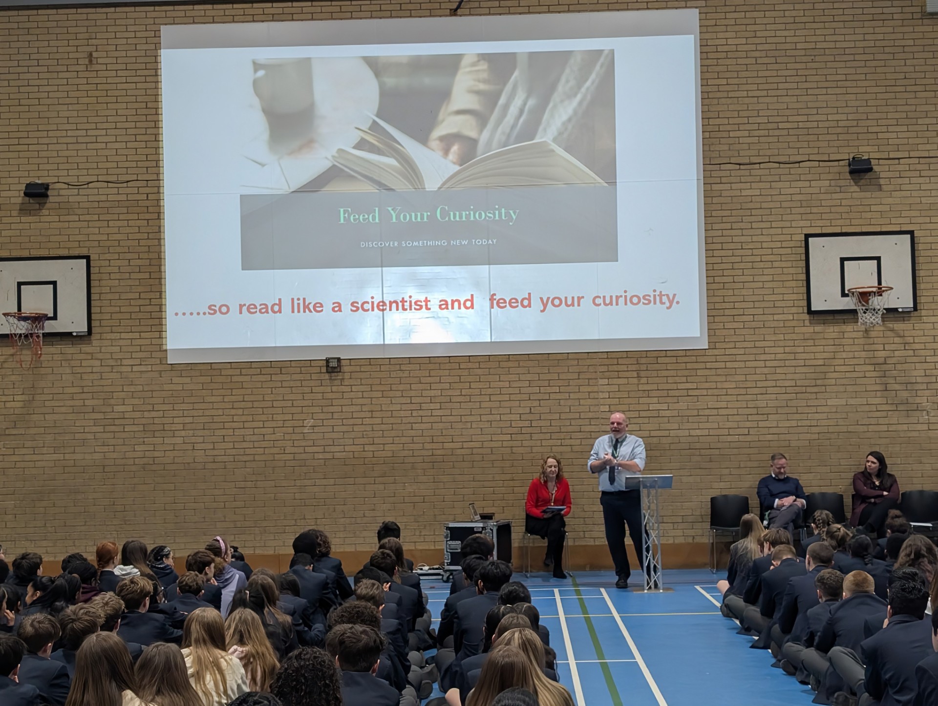 Dr Richards, Mrs Ryan, Miss Lowe, Mr Mumford and Mr Parker all joined together in encouraging our students to feed their curiosity and "read like a scientist".