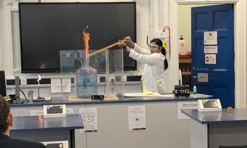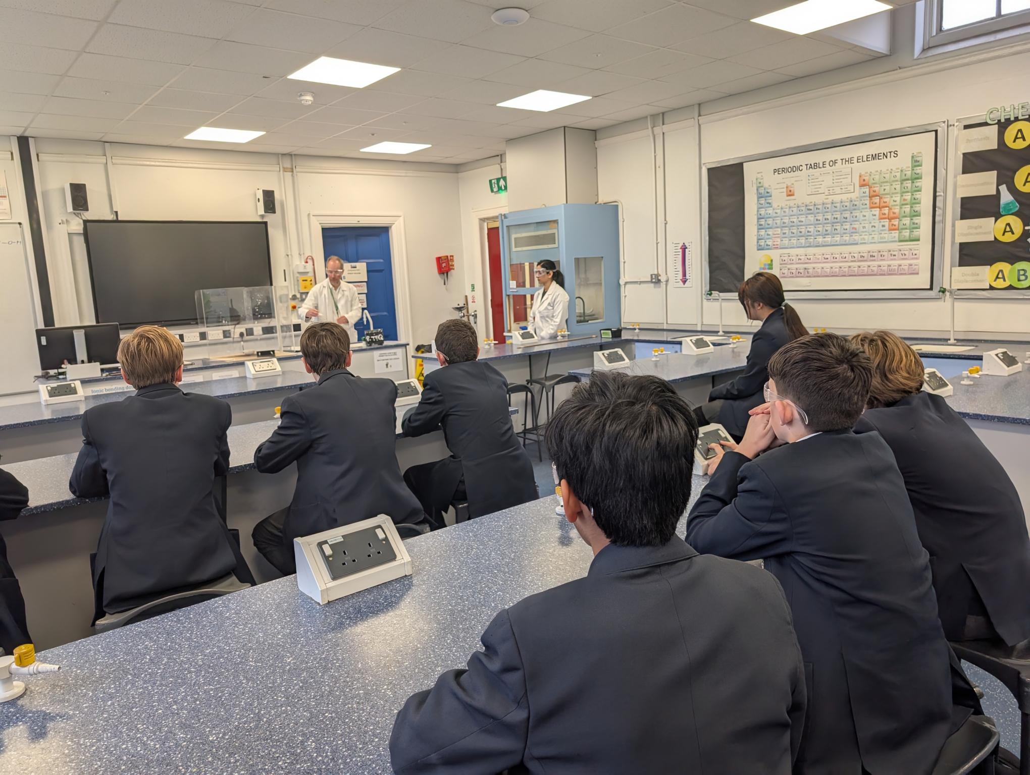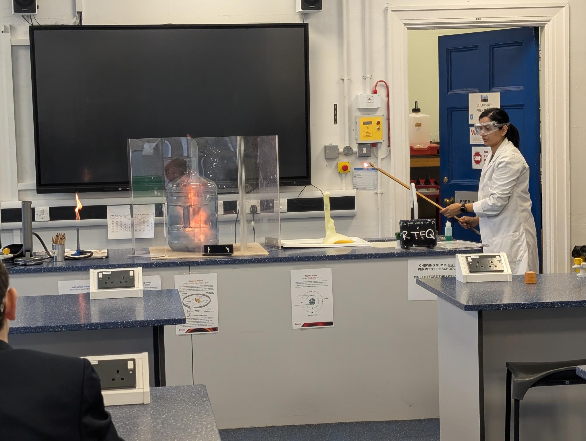 Last but by no means least, at lunchtime, Miss Ghaffur and Mr Dodd hosted the epic Flash Bang! show in our Chemistry department (lead picture and below).