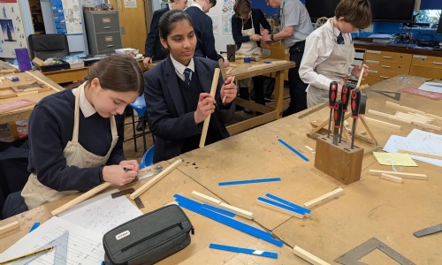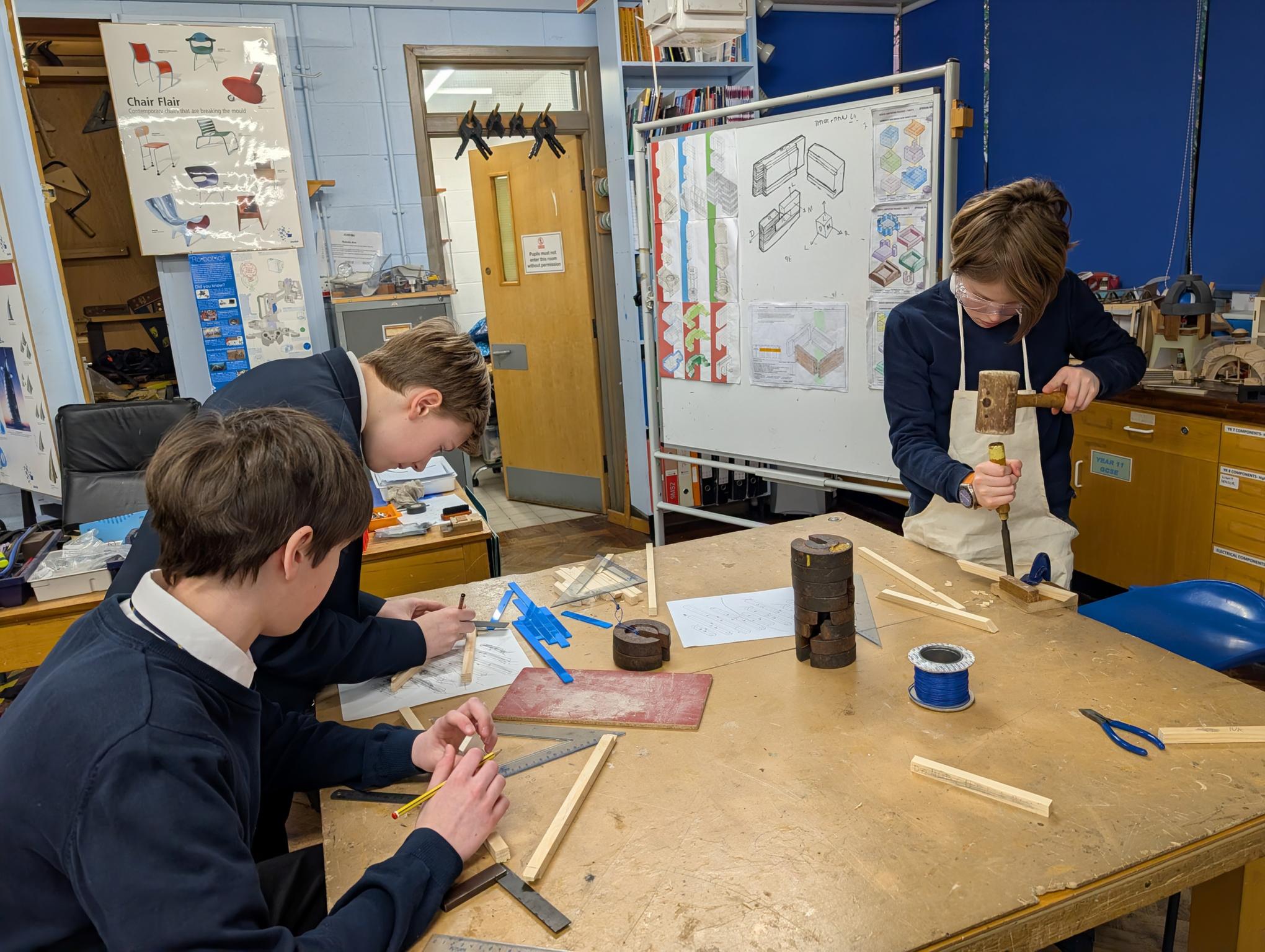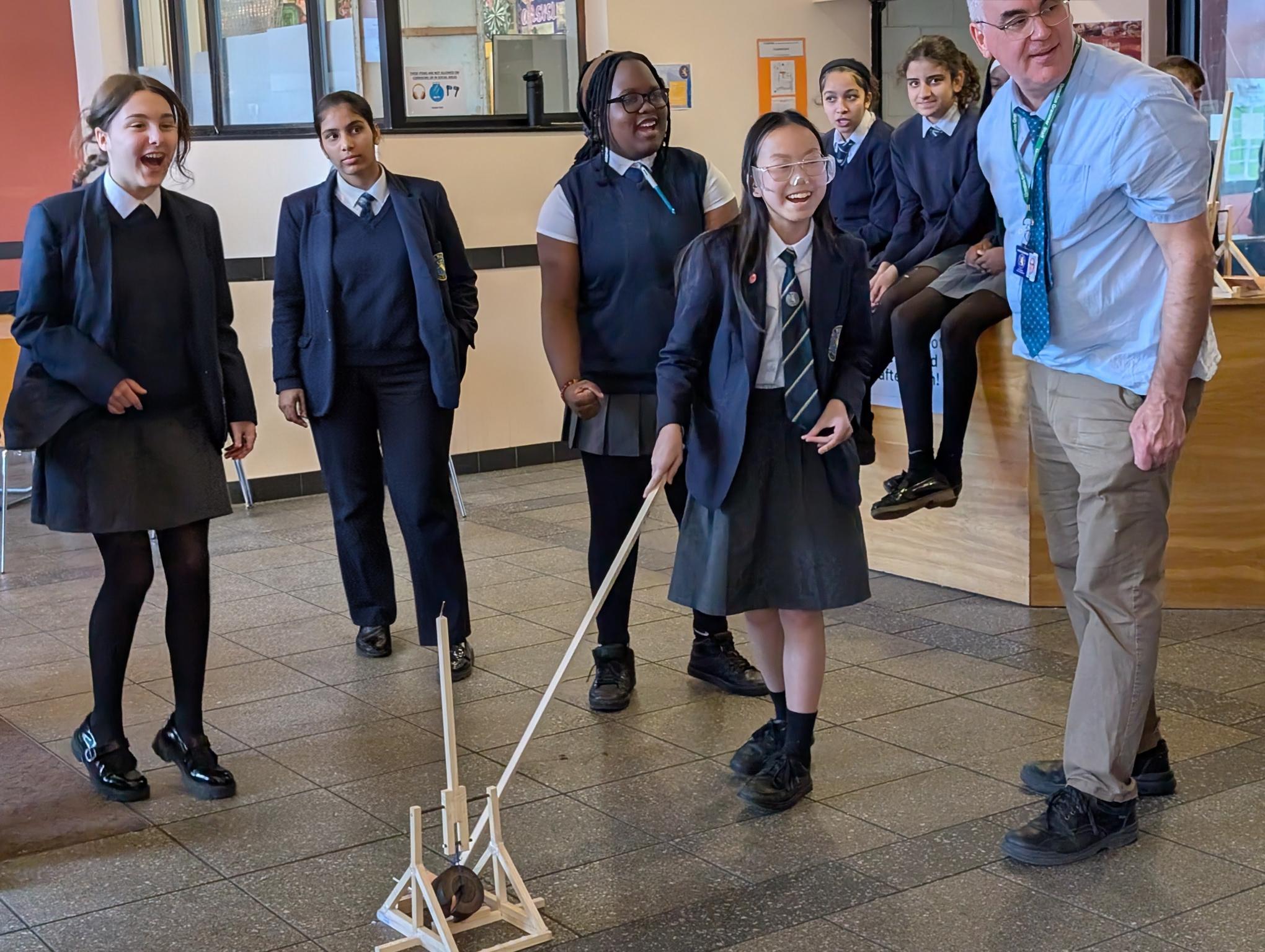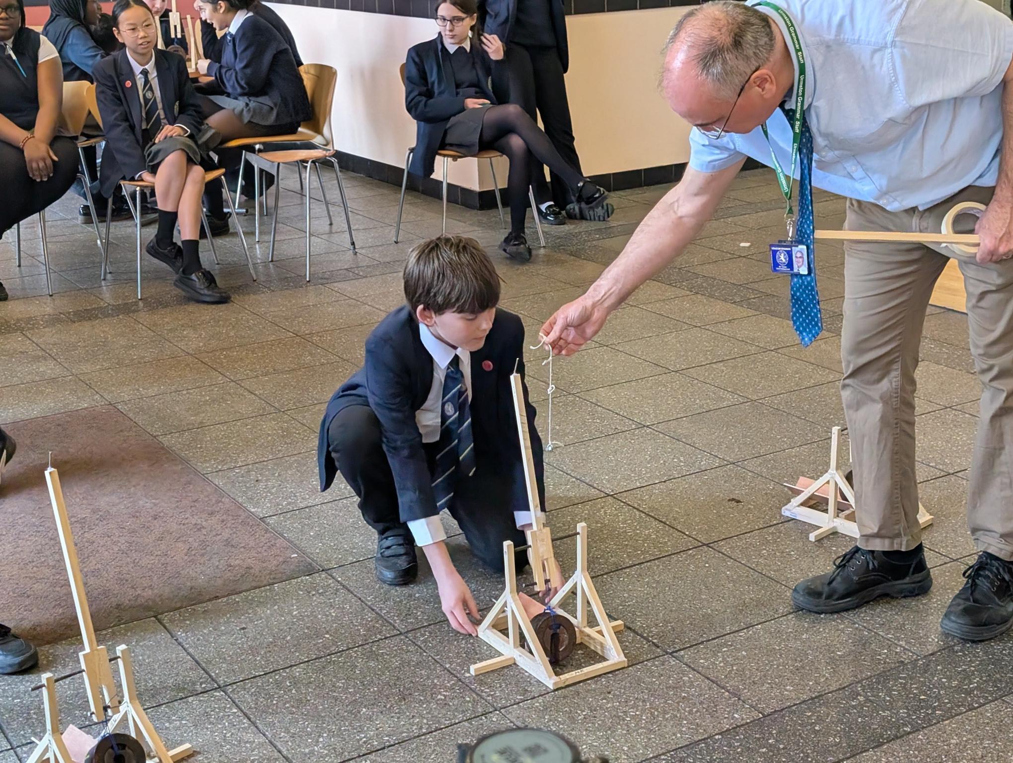 On Friday, a group of our Year 8 and 9 students took part in a full day's workshop in DT with Mr Barber and Mr Reid, where they designed and crafted their very own trebuchets in teams of four.