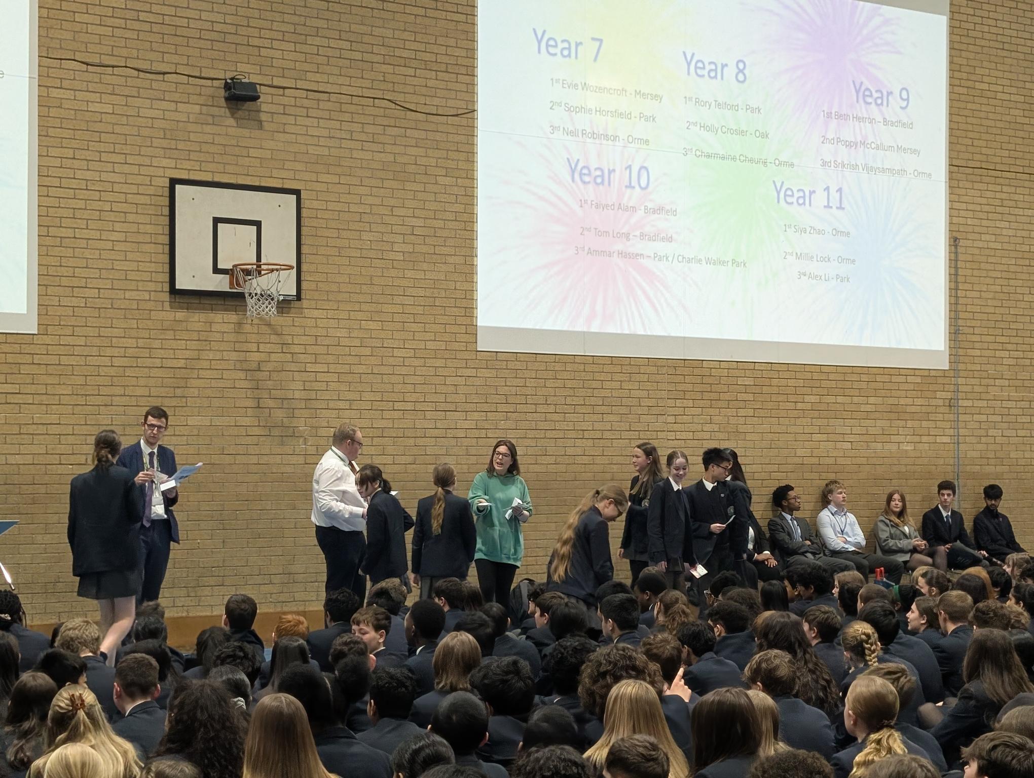 There followed a profile, celebration and prize-giving of our highest house point awardees in each of the houses: Bradfield, Mersey, Oak, Orme and Park.