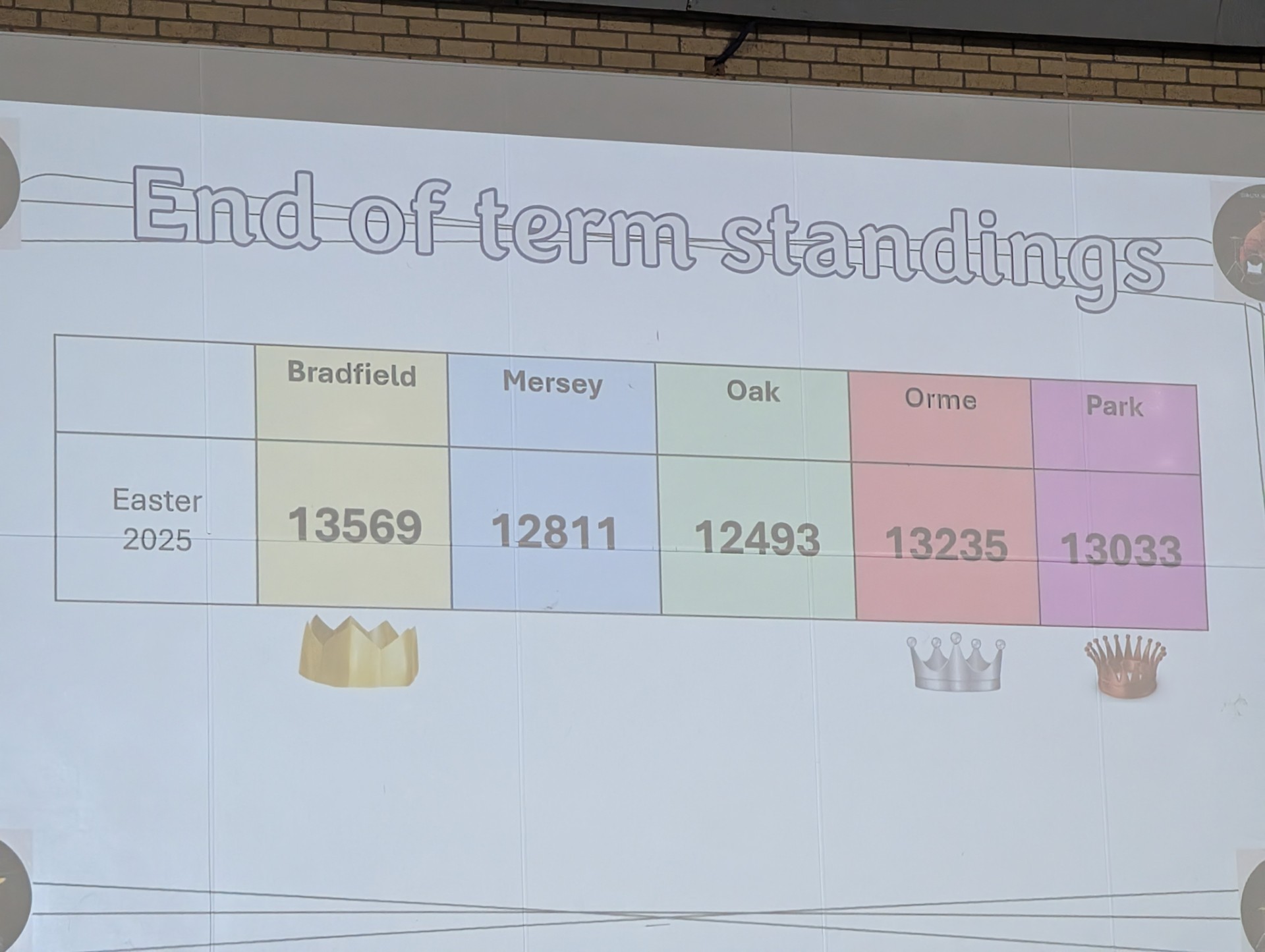 It was then time for the BIG reveal of who tops our leaderboard at the end of term, accompanied by a very fitting live drum roll from Year 12 Aarav ... huge congratulations to ... BRADFIELD!!