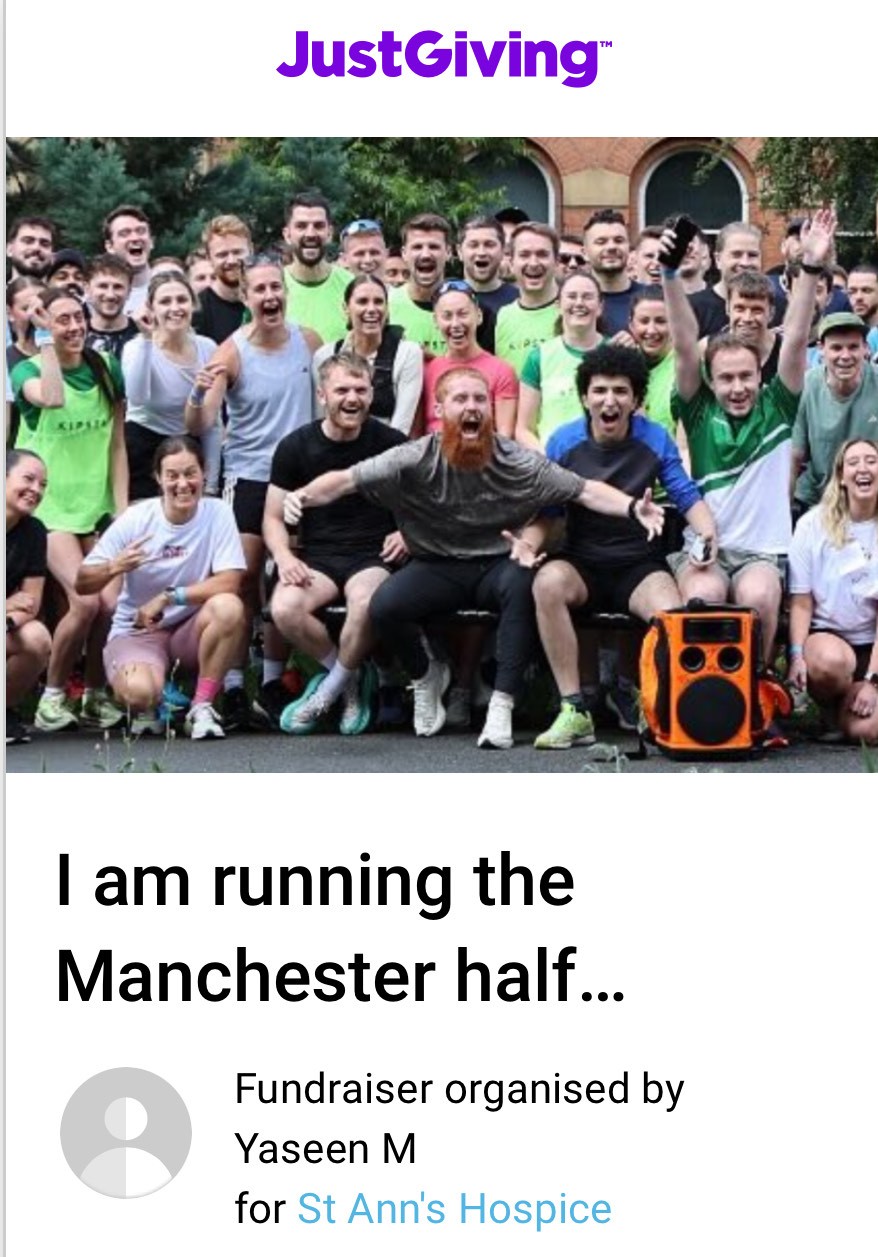 We're extremely proud of former student Yaseen, who completed his A levels with us in 2024 before going on to read Law at Manchester University, and who will be running the Manchester Half Marathon later this month to raise money for St Ann's Hospice.